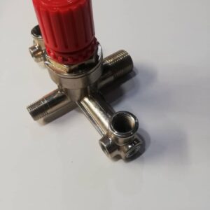 شش راهی چینی با رگولاتور مخصوص کمپرسورهای کوبله ۲۵ و ۵۰ لیتری، طراحی شده برای مدیریت و تنظیم فشار باد بهطور دقیق و موثر. این قطعه از مواد با کیفیت ساخته شده و برای استفاده در کمپرسورهای صنعتی و کوچک مناسب است.